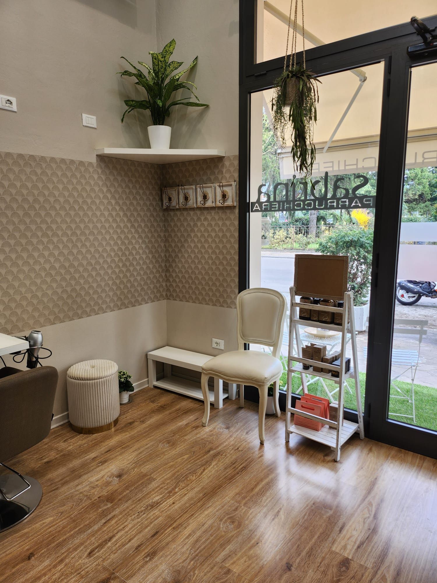 Il salone di 45 mq dispone di un soppalco con sala d'attesa e relax.